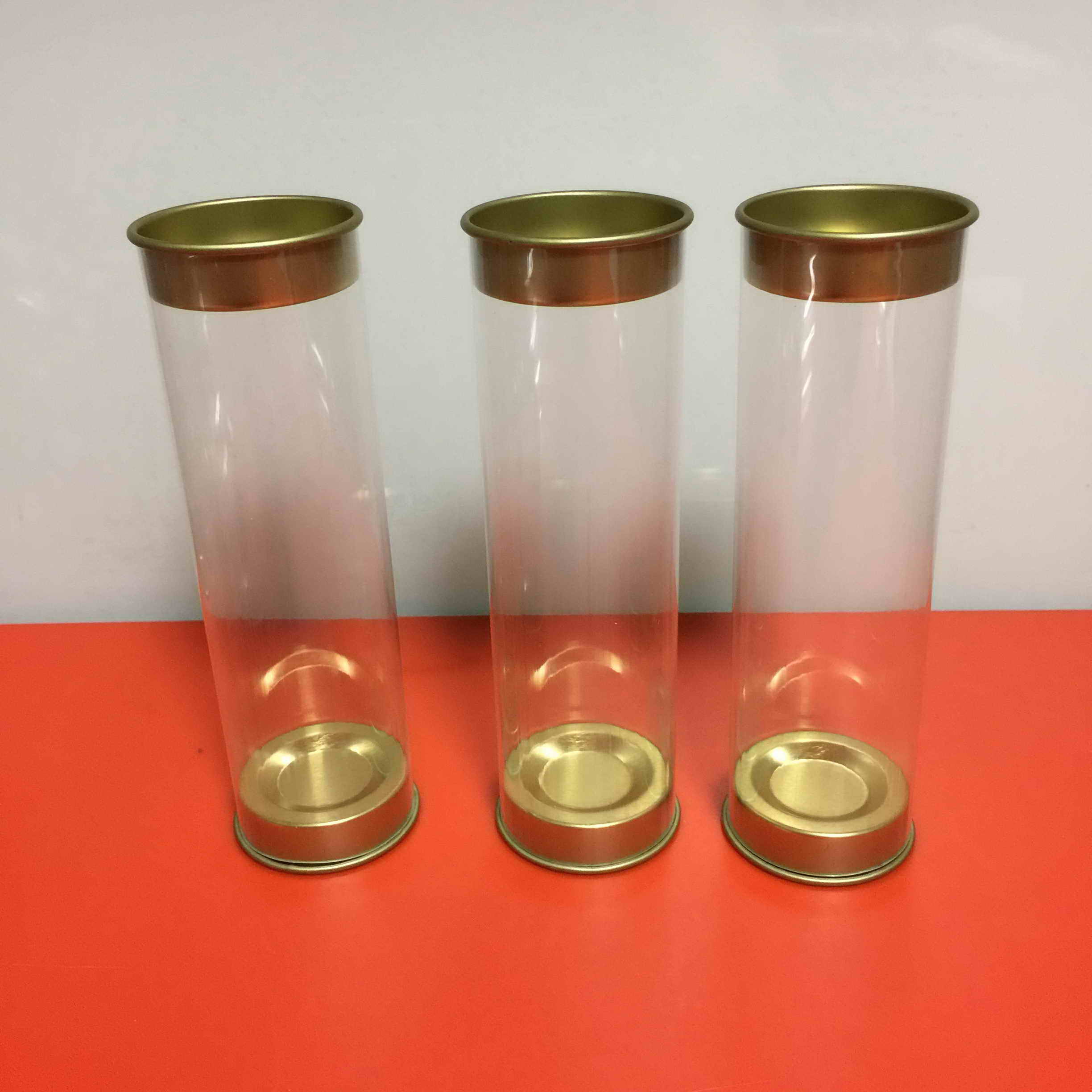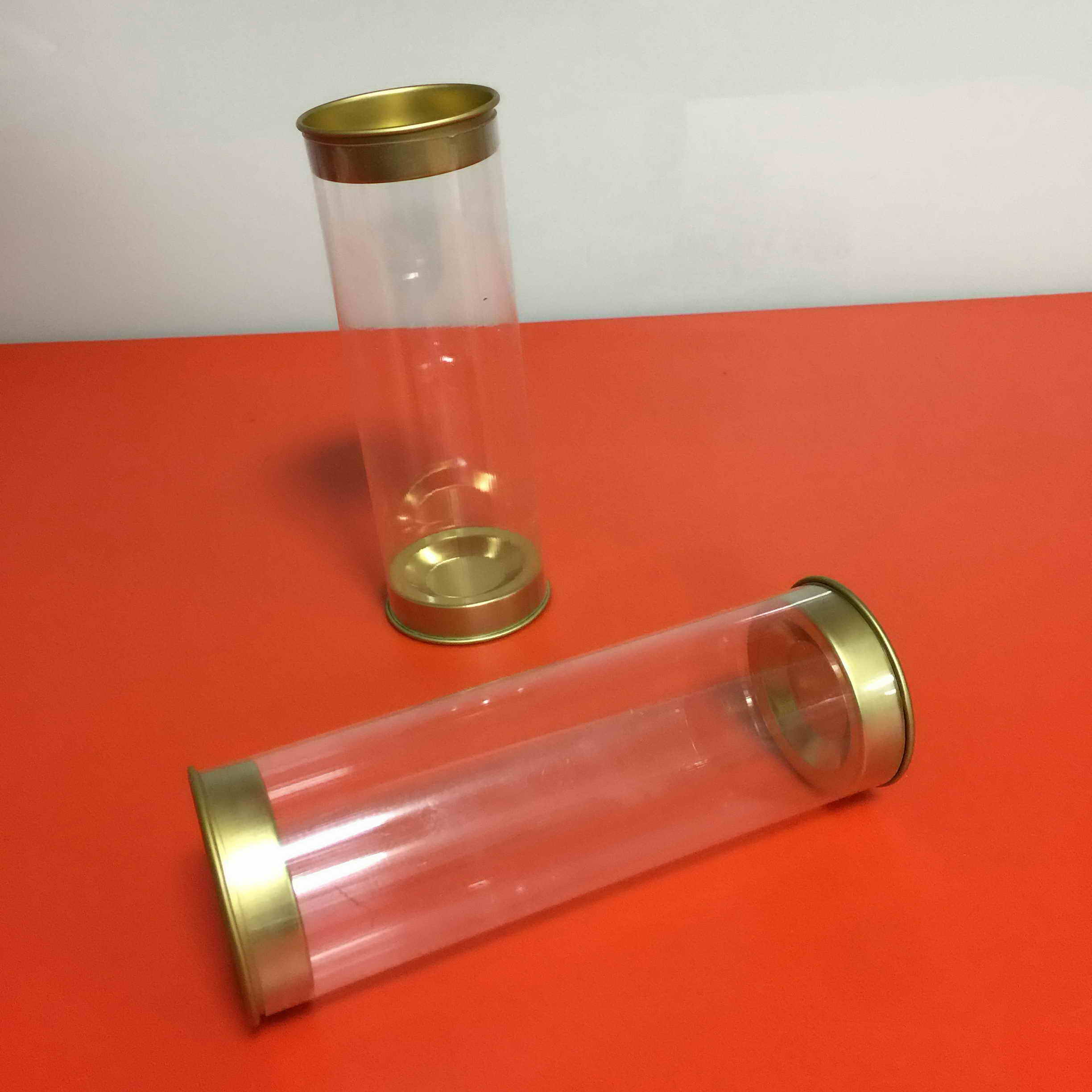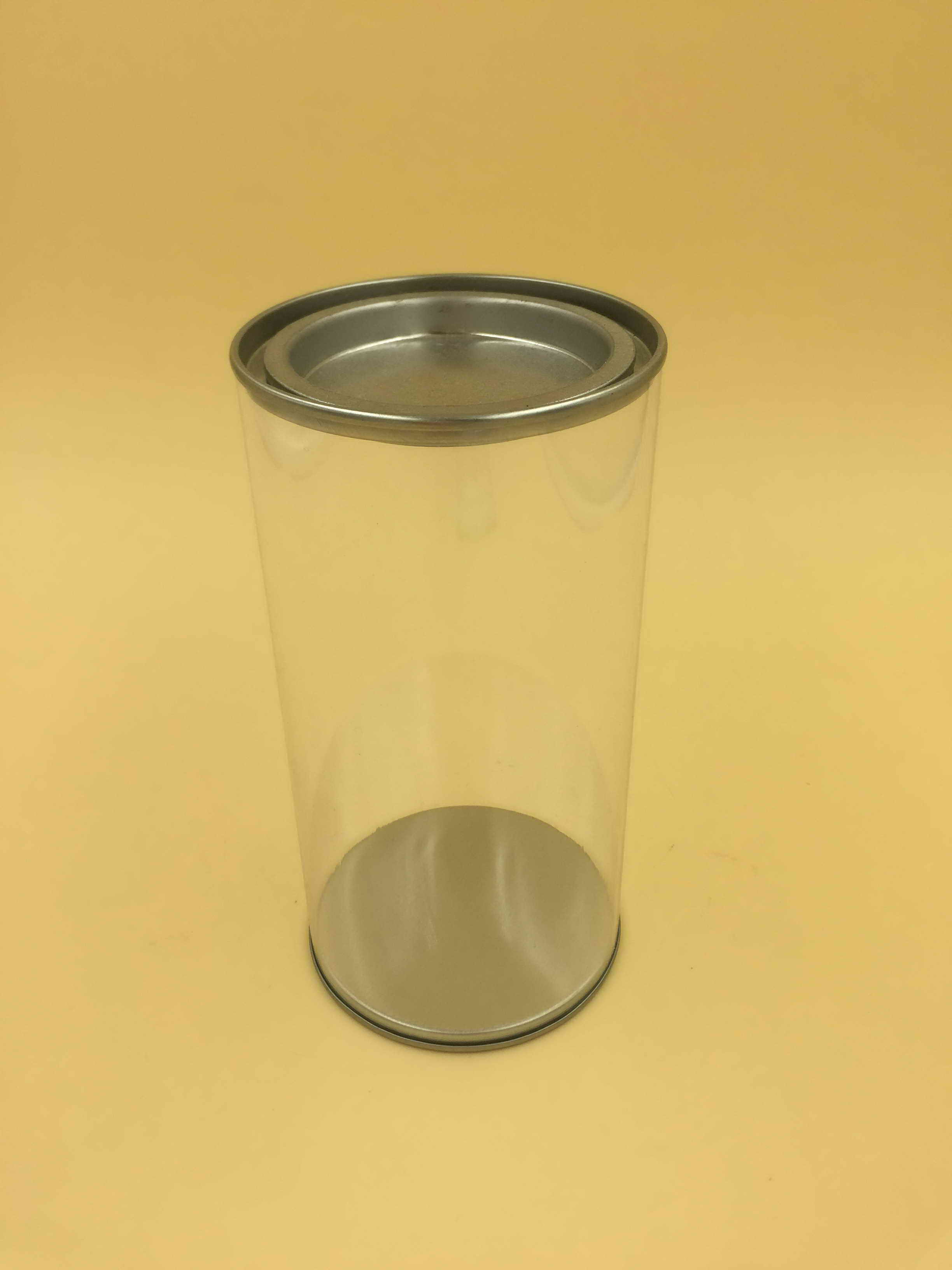 透明配铁盖圆筒/PVC配铁盖圆包装/配铁盖圆包装筒