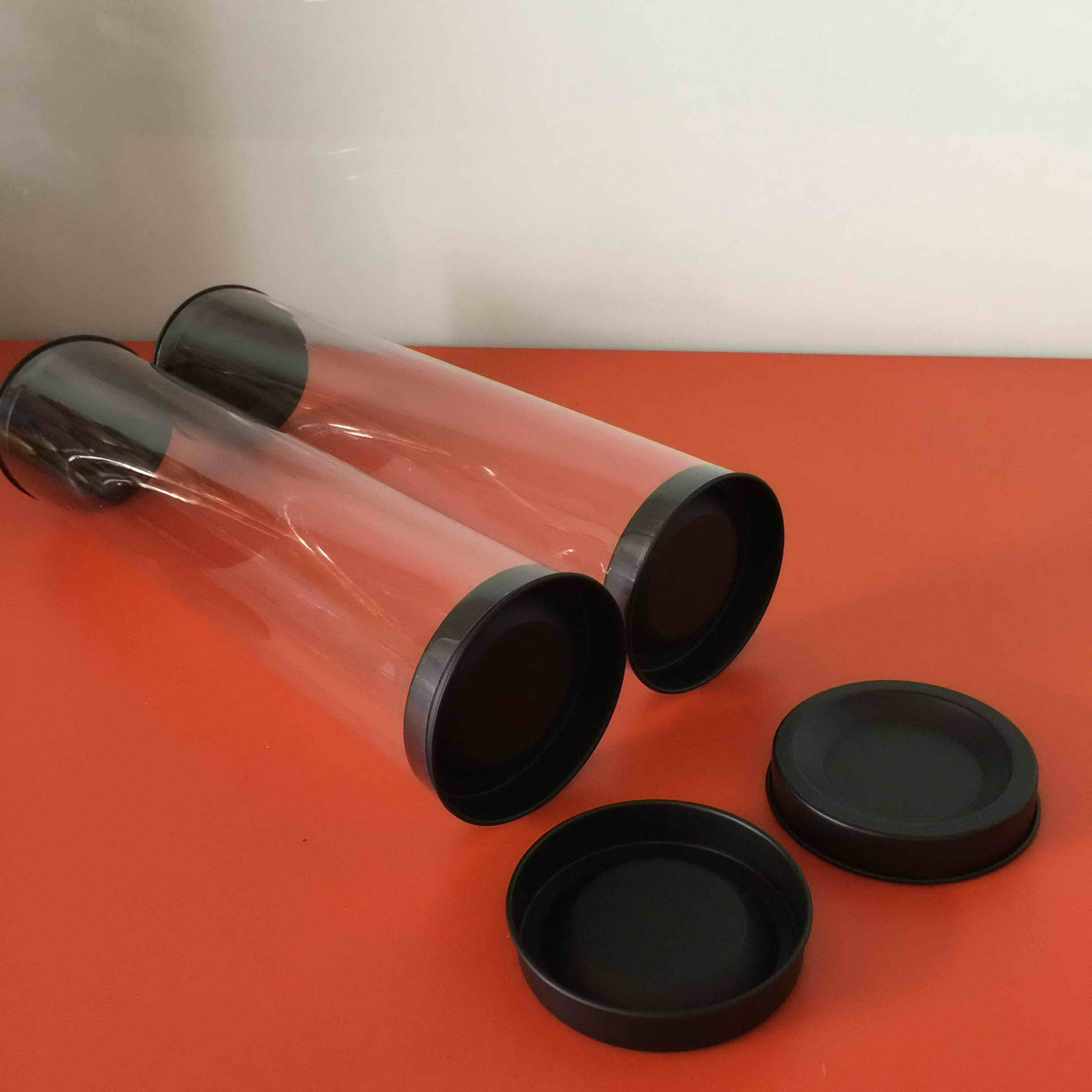 配铁盖透明筒/PETG配铁盖圆形管/塑料配铁盖圆筒/塑料包装